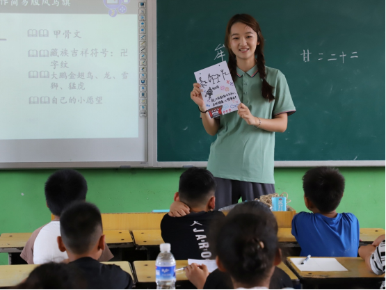 “老師,我把這個(gè)作品送給你!”這是7月2日開(kāi)封市蘭考縣閆樓鄉(xiāng)李西小學(xué)四年級(jí)學(xué)生課堂上出現(xiàn)的一幕。美育未來(lái),相約鄉(xiāng)村。今年,劉改月公益服務(wù)隊(duì)延續(xù)傳統(tǒng),第十二年前往鄉(xiāng)村支教,并將服務(wù)對(duì)象從李西小學(xué)輻射到閆樓小學(xué)、高寺小學(xué)三所學(xué)校。開(kāi)課第一天設(shè)置了“中國(guó)傳統(tǒng)文化”系列課程,其中包括“傳統(tǒng)節(jié)日及甲骨文”“探索書(shū)法奧秘”“漆扇手工坊”“創(chuàng)意紙盤(pán)畫(huà)”等多個(gè)版塊。