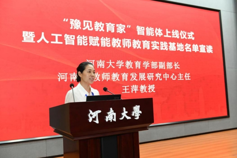 河南省教師教育發(fā)展研究中心主任、河南大學(xué)教育學(xué)部副部長王萍宣布“豫見教育家”智能體正式上線