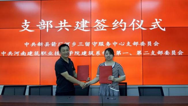 7 月 12 日上午,實踐團圍繞鄉(xiāng)村兒童教育和發(fā)展建設議題,與黨支部書記 吳建喜進行了深度交談,吳書記結合實際發(fā)展情況對逐步探索出以農村居家養(yǎng)老 和關愛“三留守”人員為主要內容的“戴畈模式”進行了詳細介紹。吳書記特別 強調,新縣箭廠河鄉(xiāng)戴畈村三留守服務中心的成功之道在于始終堅持“因地施策, 與時俱進”,確保農村留守兒童、婦女、老人關愛工作的制度化、常態(tài)化。這一 發(fā)展范式為周邊地區(qū)提供了極具價值的參考,生動詮釋了新時代通過黨建引領的 大別山精神的深刻內涵。隨后,在箭廠河村黨支部活動中心舉行了黨支部共建簽 約儀式。雙方表示,將以此次合作為契機,進一步加強交流與合作,通過組織聯(lián) 建與思想碰撞,為鄉(xiāng)村振興匯聚新動能,將專業(yè)知識轉化為助力鄉(xiāng)村振興的實際 成效。
