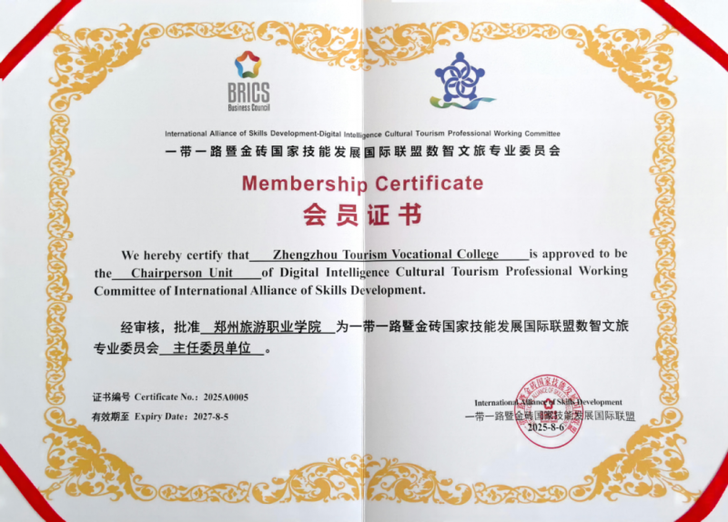 鄭州旅游職業(yè)學(xué)院作為“‘一帶一路’暨金磚國(guó)家技能發(fā)展國(guó)際聯(lián)盟數(shù)智文旅專業(yè)委員會(huì)”主任委員單位,將積極在資源聚合、產(chǎn)教聯(lián)動(dòng)、國(guó)際協(xié)同、行業(yè)革新等方面發(fā)揮作用,推動(dòng)構(gòu)建職業(yè)教育國(guó)際化與產(chǎn)業(yè)數(shù)智化轉(zhuǎn)型的協(xié)同發(fā)展范式,助力提升中國(guó)在數(shù)字文旅領(lǐng)域的國(guó)際話語權(quán)。