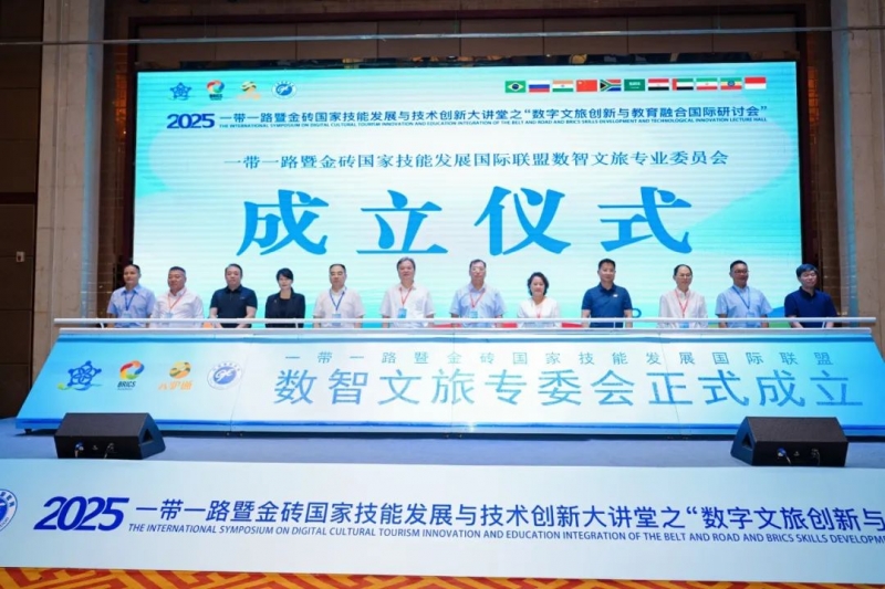 會(huì)議期間,“‘一帶一路’暨金磚國(guó)家技能發(fā)展國(guó)際聯(lián)盟數(shù)智文旅專業(yè)委員會(huì)” 啟動(dòng)儀式、選舉及證書頒發(fā)活動(dòng)順利舉行,數(shù)智文旅專委會(huì)作為金磚國(guó)家與“一帶一路”框架下的國(guó)際合作樞紐,以“資源整合+產(chǎn)教協(xié)同+國(guó)際賦能”為核心模式,通過搭建跨國(guó)校企合作平臺(tái),有助于推動(dòng)數(shù)字技術(shù)與文旅技能深度融合。