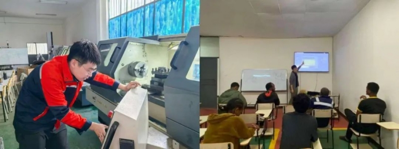 受學校委派,安仕琪到埃塞俄比亞聯(lián)邦技術職業(yè)培訓學院開展需求調(diào)研,并針對當?shù)匦枨笳{(diào)整教學內(nèi)容,為當?shù)卦谛熒捌髽I(yè)員工講授數(shù)控加工及工藝設計優(yōu)化等內(nèi)容。面對實訓車間多臺故障數(shù)控設備,他帶領當?shù)丶脊がF(xiàn)場排查,成功解決伺服電機、氣動系統(tǒng)等多處問題,將規(guī)范操作流程整理成技術資料提交給校方,顯著提升了設備利用率和學員技能水平。