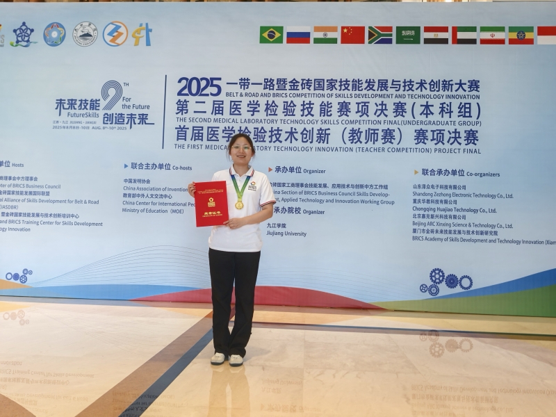 8月8日至10日,“一帶一路”暨金磚國(guó)家技能發(fā)展與技術(shù)創(chuàng)新大賽醫(yī)學(xué)檢驗(yàn)技術(shù)相關(guān)賽項(xiàng)在九江學(xué)院同期舉行,其中首屆醫(yī)學(xué)檢驗(yàn)技術(shù)創(chuàng)新賽項(xiàng)(本科教師組)與第二屆醫(yī)學(xué)檢驗(yàn)技術(shù)賽項(xiàng)(本科學(xué)生組)分別開(kāi)賽。此次大賽吸引了全國(guó)60余所985、211、雙一流高校的240余名師生同臺(tái)競(jìng)技,豫北醫(yī)學(xué)院醫(yī)學(xué)檢驗(yàn)學(xué)院師生雙線出擊,斬獲多項(xiàng)榮譽(yù),教師組王旭榮獲一等獎(jiǎng)金獎(jiǎng)、王春明、黃李文惠獲三等獎(jiǎng)銅獎(jiǎng),孫夢(mèng)洋、王蕊、姜珊摘得優(yōu)秀獎(jiǎng),學(xué)校斬獲“最佳組織獎(jiǎng)”。學(xué)生組醫(yī)學(xué)檢驗(yàn)學(xué)院181班雷璐瑤(德馨書(shū)院)與190班甄鳳月(崇德書(shū)院)共同斬獲二等獎(jiǎng),其指導(dǎo)教師孫夢(mèng)洋、王春明獲“優(yōu)秀指導(dǎo)教師獎(jiǎng)”,學(xué)校獲“優(yōu)秀組織獎(jiǎng)”。該校創(chuàng)河南省(四所參賽院校中唯一民辦高校)及全國(guó)民辦高校最佳成績(jī)。