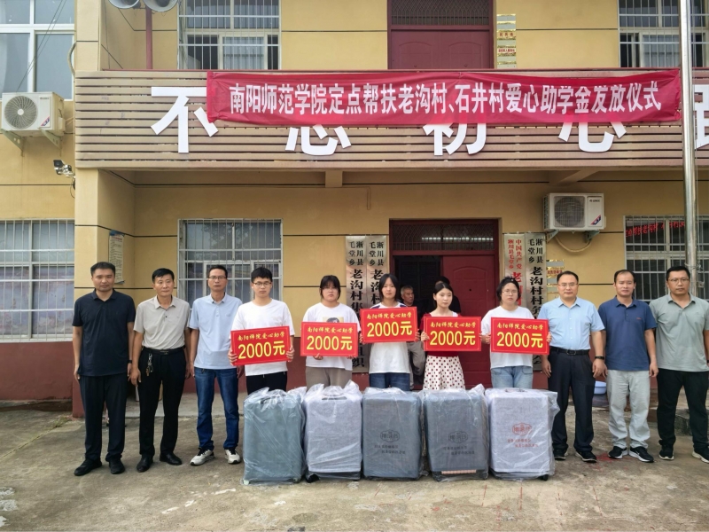 8月26日,南陽(yáng)師范學(xué)院到定點(diǎn)幫扶村開(kāi)展“金秋助學(xué)”活動(dòng),為學(xué)生們發(fā)放助學(xué)金、行李箱。黨委組織部、工會(huì)相關(guān)負(fù)責(zé)同志,駐村工作隊(duì)、老溝村、石井村“兩委”和今年考上大學(xué)的新生以及家長(zhǎng)代表參加活動(dòng)。