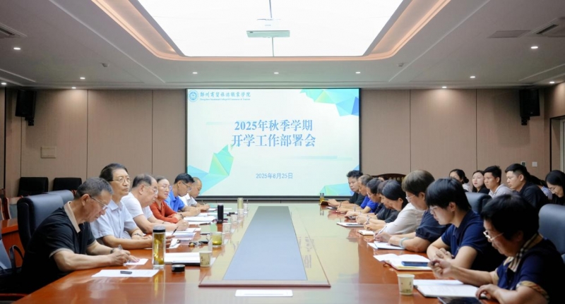 金秋送爽,奮楫啟航。為全面做好新學(xué)期開學(xué)工作,明確新學(xué)期各項工作職責(zé)與目標,確保開學(xué)后各項工作有序開展,8月25日上午,鄭州商貿(mào)旅游職業(yè)學(xué)院召開2025年秋季學(xué)期開學(xué)工作部署會。董事長席青慧、校黨委書記張睿、校長程東陽及其他校領(lǐng)導(dǎo)出席會議,各處室、二級學(xué)院負責(zé)人參加會議。會議由副校長康勇主持。