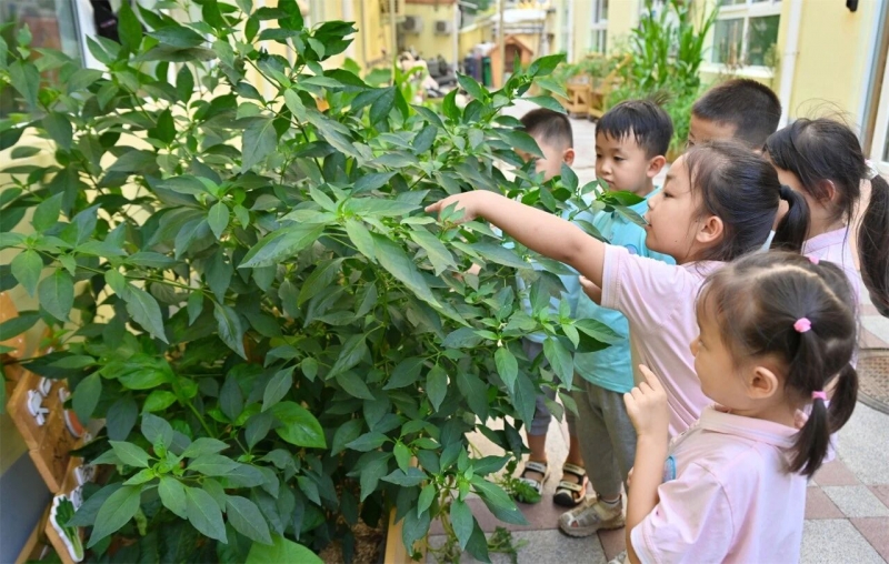 孩子們還驚喜地發(fā)現(xiàn),暑假前種下的蔬菜,如今已結(jié)出累累果實。綠綠的茄子垂在枝頭,紅彤彤的辣椒像一串串小燈籠,綠油油的花生苗也在晨風(fēng)中輕輕搖擺。孩子們小心翼翼地拔除雜草,為蔬菜松土,勞動的意義悄然發(fā)生。