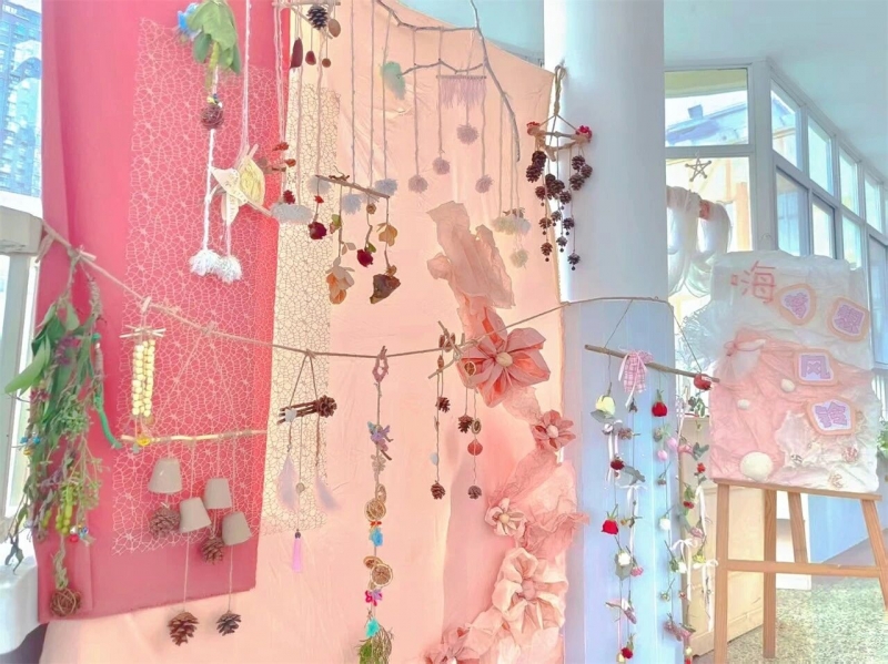 孩子們用小手編織著秋天的風(fēng)鈴。形式多樣的風(fēng)鈴里,松果沉甸甸的、貝殼泛著珠光、木片輕輕碰撞、樹葉沙沙作響。他們系好每一根線,把“愿望”和“未來”藏進這些自然的饋贈中。每當(dāng)微風(fēng)拂過,便響起細碎而清澈的聲音。