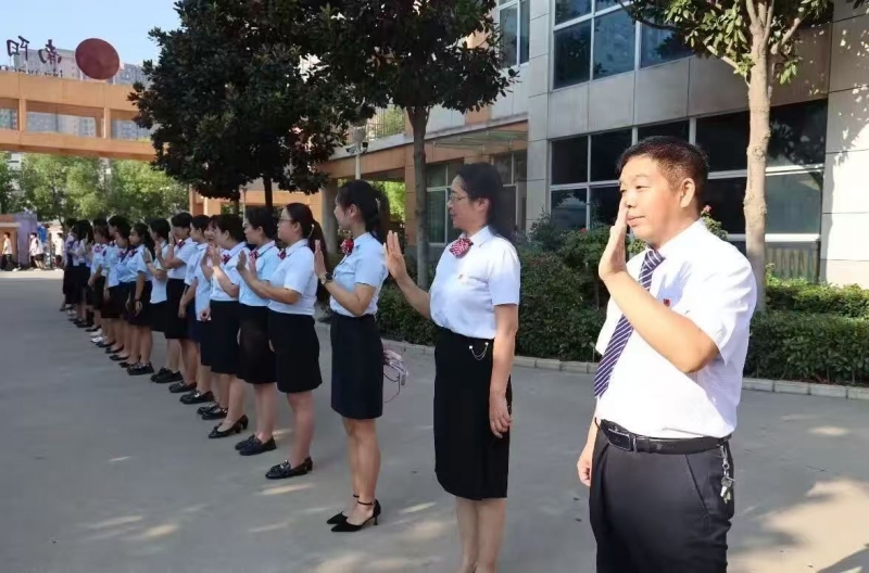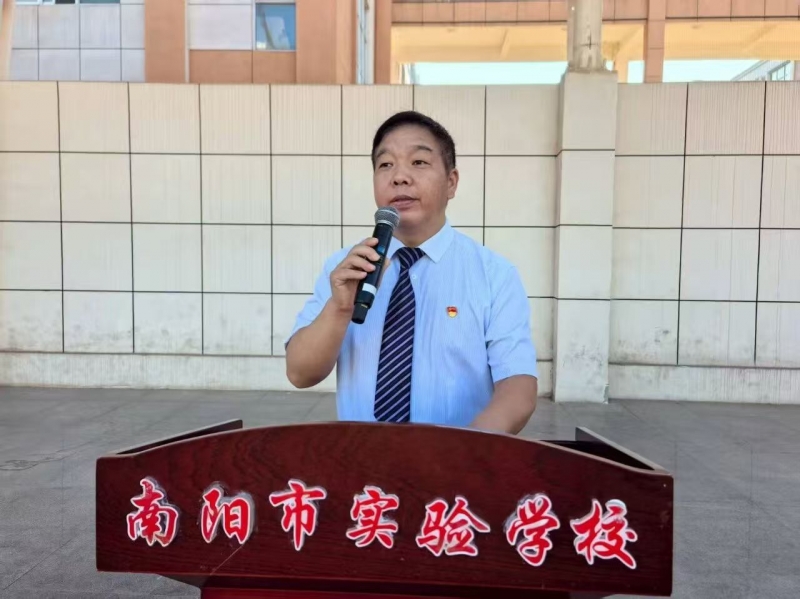 南陽市實驗學(xué)校校長趙文朝發(fā)表講話。趙文朝對新加入學(xué)校的新生表示歡迎,并向他們提出三點希望:第一,要傳承“天下興亡、匹夫有責(zé)”的愛國精神,立下報國之志;第二,要弘揚“百折不撓、堅忍不拔”的奮斗精神,走好求學(xué)之路;第三,要鍛造“不畏強暴、自立自強”的擔(dān)當(dāng)精神,邁向卓越人生。