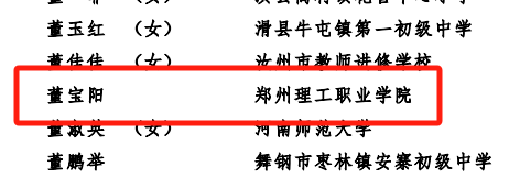 近日,河南省教育系統(tǒng)先進(jìn)工作者及優(yōu)秀教師評(píng)選結(jié)果揭曉,鄭州理工職業(yè)學(xué)院喜獲佳績。該校教務(wù)處處長李慶標(biāo)榮獲“河南省教育系統(tǒng)先進(jìn)工作者”榮譽(yù)稱號(hào),董寶陽老師榮獲“河南省優(yōu)秀教師”榮譽(yù)稱號(hào)。