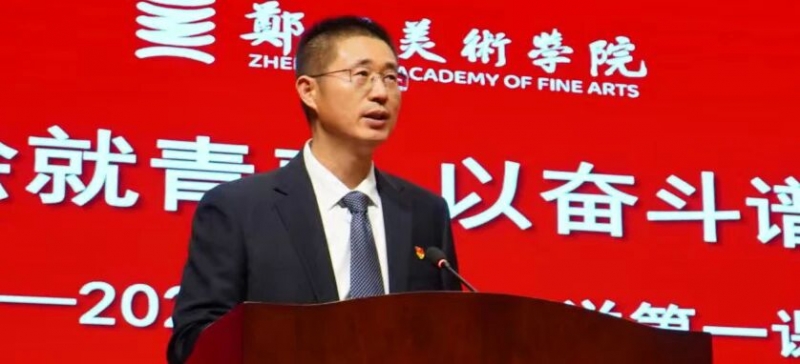 在“讀懂鄭美”部分,石品校長從校史回眸、辦學實力、社會影響三個維度切入,結合學校辦學歷程、學科專業(yè)布局、師資隊伍建設、科研創(chuàng)作成果、學術品牌打造、產(chǎn)教融合實踐及就業(yè)升學質(zhì)量等方面,向新生進行了全方位介紹。他談到,學校辦學24年來,始終堅持黨的領導,全面貫徹黨的教育方針,堅守社會主義辦學方向,落實立德樹人根本任務,致力于培養(yǎng)德智體美勞全面發(fā)展的社會主義建設者和接班人。2023年6月,鄭州美術學院正式成立,填補了河南省無獨立設置藝術類本科高校的空白;成功分立兩年來,學校錨定“創(chuàng)建高水平特色美術學院”的發(fā)展目標,持續(xù)深化內(nèi)涵特色建設,不斷開創(chuàng)事業(yè)發(fā)展新局面、譜寫特色美院建設新篇章,為文化強省、教育強省建設及中原大地推進中國式現(xiàn)代化貢獻“鄭州美院”力量。