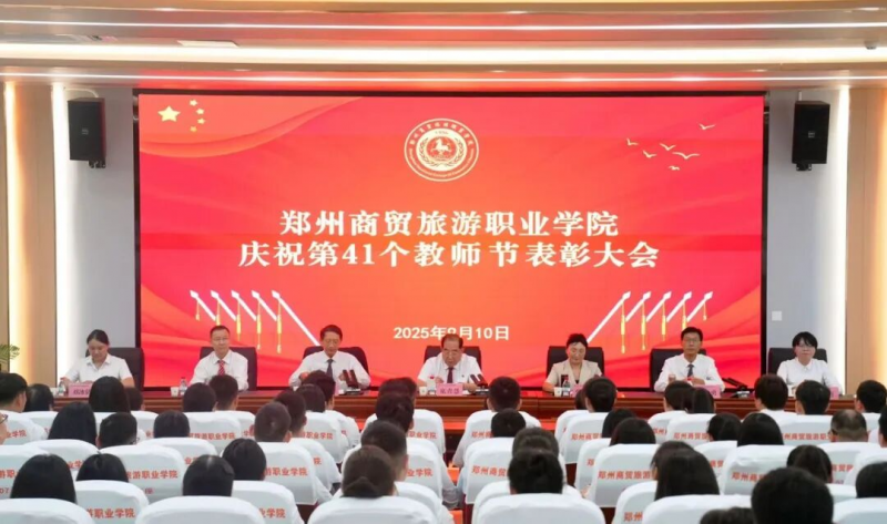9月10日下午,鄭州商貿(mào)旅游職業(yè)學(xué)院在新密校區(qū)教學(xué)樓報(bào)告廳召開慶祝第41個(gè)教師節(jié)表彰大會(huì)。學(xué)校董事長席青慧、校黨委書記張睿、校長程?hào)|陽等校黨政領(lǐng)導(dǎo)出席會(huì)議,各處室、二級(jí)學(xué)院負(fù)責(zé)人、全體教職工和學(xué)生代表參加會(huì)議。會(huì)議由校長程?hào)|陽主持。