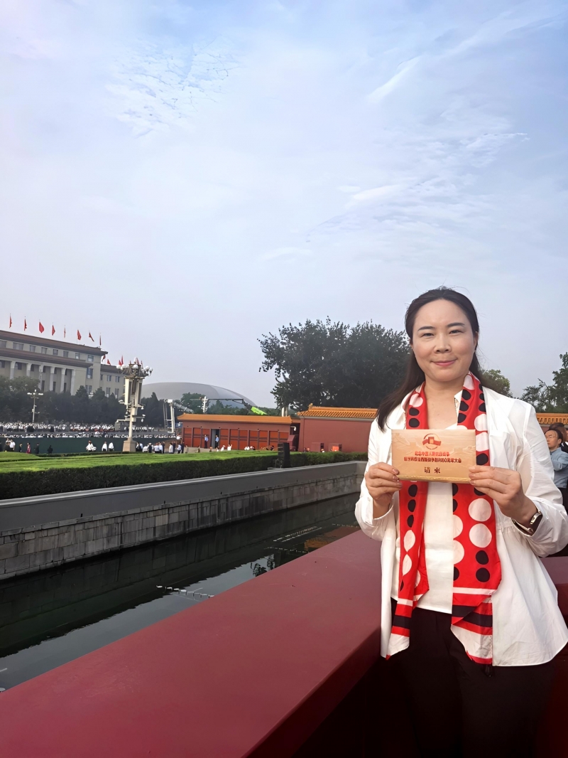 9月3日,農(nóng)工黨中央委員、全國三八紅旗手、豫北醫(yī)學(xué)院董事長郭華偉受邀在天安門廣場現(xiàn)場觀禮。當(dāng)看著受閱隊員走過面前,個個身姿挺拔、目光如炬,郭華偉的內(nèi)心深受觸動。