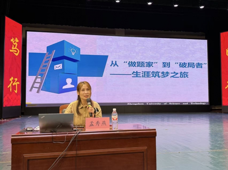教育部“宏志助航計(jì)劃”培訓(xùn)講師孟秀燕副教授以“從‘做題家’到‘破局者’——生涯筑夢(mèng)之旅”為主題,闡述了大學(xué)階段生涯發(fā)展的基本邏輯。巧妙結(jié)合專業(yè)行業(yè)的就業(yè)數(shù)據(jù)以及典型的職業(yè)發(fā)展案例進(jìn)行深入剖析。讓新同學(xué)深刻認(rèn)識(shí)到,隨著科技的飛速發(fā)展和社會(huì)的不斷進(jìn)步,僅僅滿足于掌握書本上的理論知識(shí)已經(jīng)遠(yuǎn)遠(yuǎn)不夠,必須具備更強(qiáng)的實(shí)踐能力和創(chuàng)新精神。