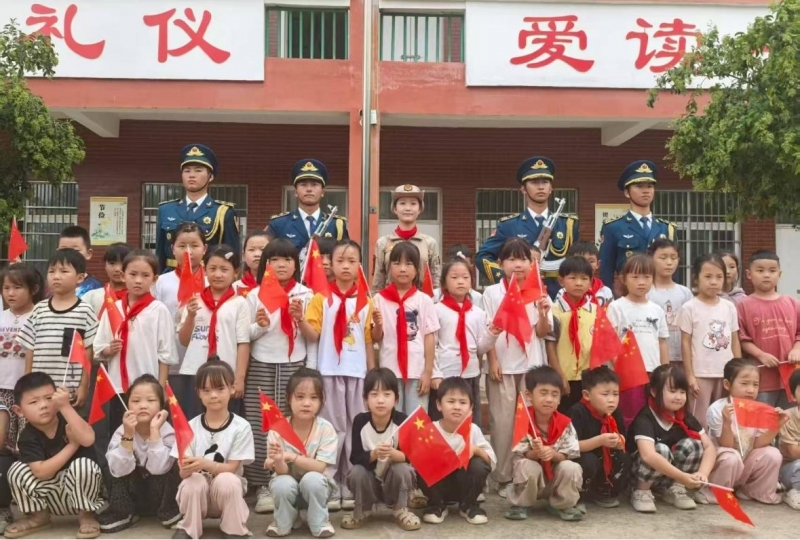 臨近我國(guó)第25個(gè)全民國(guó)防教育日,為加強(qiáng)國(guó)防教育,傳承和弘揚(yáng)愛(ài)國(guó)主義精神,厚植愛(ài)國(guó)主義情懷,鍛造學(xué)生熱愛(ài)祖國(guó)、矢志報(bào)國(guó)的意志品質(zhì)。9月15日上午,河南工業(yè)大學(xué)國(guó)際教育學(xué)院學(xué)生、中國(guó)人民抗日戰(zhàn)爭(zhēng)暨世界反法西斯戰(zhàn)爭(zhēng)勝利80周年大會(huì)閱兵式民兵方陣成員王伊帆與河南工業(yè)大學(xué)黨委學(xué)工部(武裝部)、國(guó)際教育學(xué)院國(guó)防預(yù)備連隊(duì)員、校國(guó)旗護(hù)衛(wèi)隊(duì)成員一起走進(jìn)學(xué)校定點(diǎn)幫扶馬古崗村小學(xué),開(kāi)展“大手牽小手,同升一面旗”愛(ài)國(guó)主義教育活動(dòng)。