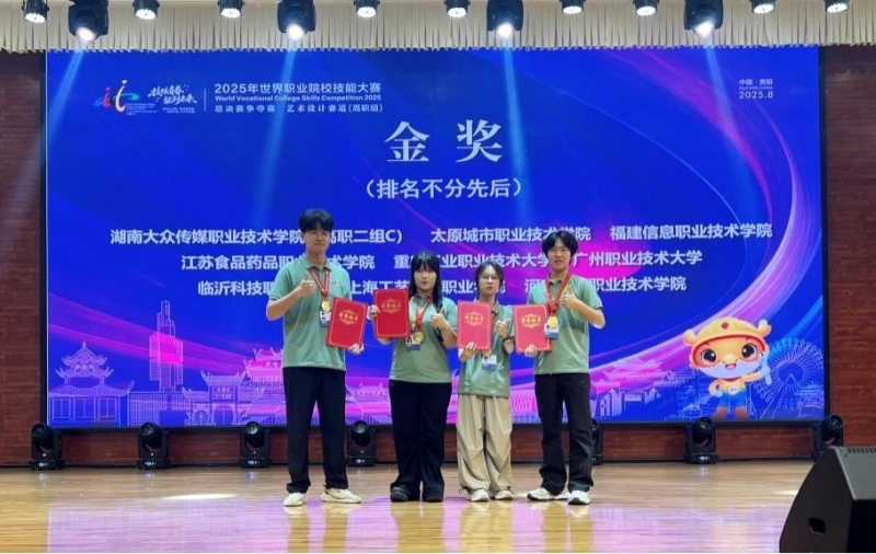 8月31日,2025年世界職業(yè)院校技能大賽藝術(shù)設計賽道(高職組)在貴州圓滿落幕。河南建筑職業(yè)技術(shù)學院王世博、陳佳、馬嘉爍、陳順鑫四位學生組成參賽隊伍,在校領導的關(guān)心與支持下,在建筑系教師陳倬、李家卉的悉心指導下,團隊憑借其卓越的創(chuàng)新思維、精湛的專業(yè)技術(shù)和穩(wěn)定的現(xiàn)場發(fā)揮,從眾多強手中脫穎而出,奪得該賽道金獎。