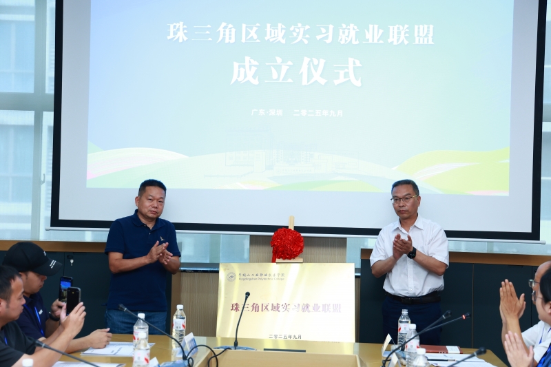 最后,楊立峰與麥亦斌共同為“平頂山工業(yè)職業(yè)技術(shù)學院珠三角區(qū)域?qū)嵙暰蜆I(yè)聯(lián)盟”揭牌。紅綢落下,掌聲雷動,這一刻不僅是聯(lián)盟正式成立的象征,更是校企合作開啟新征程、職業(yè)教育與產(chǎn)業(yè)發(fā)展深度融合的重要里程碑。