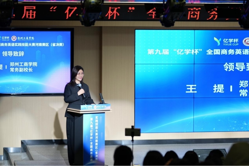 為強(qiáng)化商務(wù)英語專業(yè)人才實踐能力培養(yǎng),搭建高校專業(yè)交流與技能比拼平臺,9月19日—21日,第九屆“億學(xué)杯”全國商務(wù)英語實踐技能大賽河南賽區(qū)省決賽在鄭州工商學(xué)院成功舉辦。本次大賽由河南省高等教育學(xué)會指導(dǎo),河南省高等教育學(xué)會外語教學(xué)研究分會主辦,鄭州工商學(xué)院承辦,福建億學(xué)教育科技集團(tuán)有限公司協(xié)辦,來自全省20所高校27支參賽隊伍的200余名師生參與本次競賽。河南省高等教育學(xué)會副秘書長張寶柱、河南省高等教育學(xué)會外語教學(xué)研究分會會長張加民、福建億學(xué)教育科技集團(tuán)有限公司副總經(jīng)理龔振鋒受邀出席并致辭。鄭州工商學(xué)院常務(wù)副校長王提致辭并宣布比賽開幕。