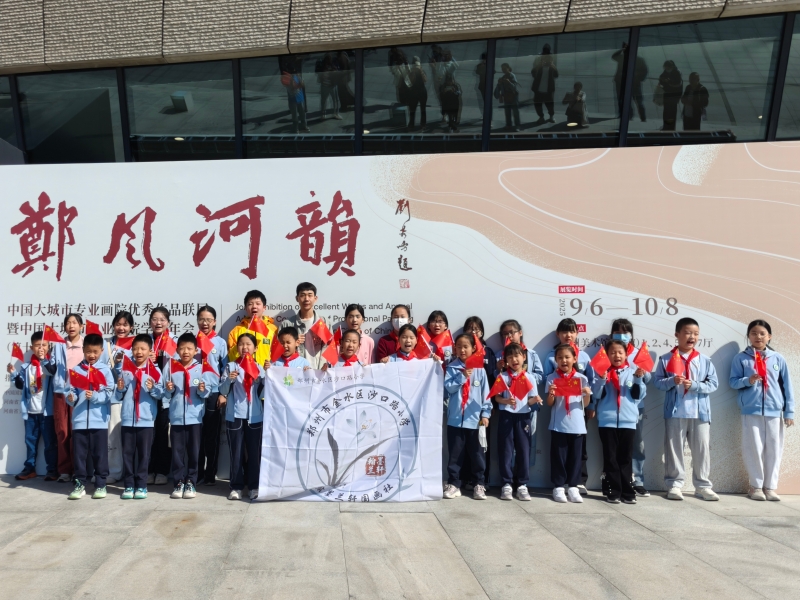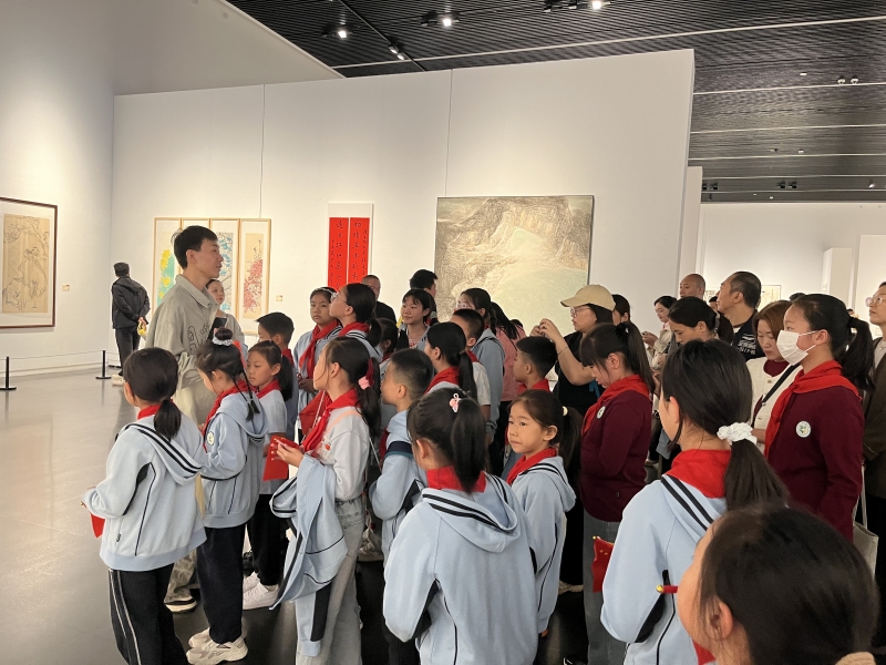 近日,為慶祝新中國(guó)成立76周年,鄭州美術(shù)館迎來(lái)“中國(guó)大城市專業(yè)畫院優(yōu)秀作品展”,展覽匯聚全國(guó)多位藝術(shù)家的百余幅精品力作。鄭州市金水區(qū)沙口路小學(xué)“翰墨蘭軒”國(guó)畫社師生在輔導(dǎo)老師張子軒的帶領(lǐng)下,前往觀展,開(kāi)展了一堂生動(dòng)的“行走中的美術(shù)課”。