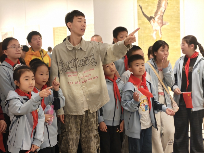 學(xué)生們沉浸于藝術(shù)世界之中,或駐足細(xì)觀,或低聲交流,感受國(guó)畫藝術(shù)所承載的文化底蘊(yùn)與時(shí)代精神。通過(guò)這場(chǎng)美育實(shí)踐,孩子們不僅提升了審美能力,也更加直觀地認(rèn)識(shí)到祖國(guó)的發(fā)展與強(qiáng)大,愛(ài)國(guó)情懷油然而生。