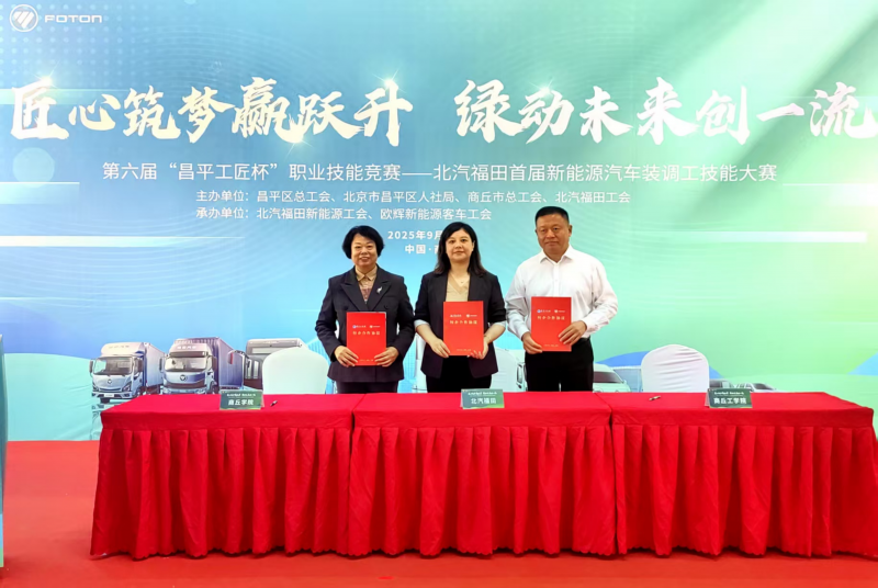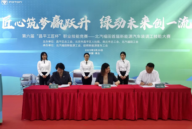 2025年9月20日,商丘學院應邀參加在河南福田智藍新能源汽車有限公司舉辦的“昌平工匠杯”職業(yè)技能競賽——北汽福田首屆新能源汽車裝調工技能大賽開幕儀式,并與北汽福田汽車股份有限公司正式簽署校企協同育人戰(zhàn)略合作協議。