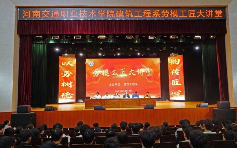 9月17日下午,河南交通職業(yè)技術(shù)學(xué)院邀請(qǐng)全國(guó)五一勞動(dòng)獎(jiǎng)?wù)芦@得者李亞光、陳建平兩位專家在學(xué)校鄭東校區(qū)文化藝術(shù)中心舉辦“勞模工匠大講堂”專題講座。副校長(zhǎng)劉芝梅出席活動(dòng)并講話。黨委宣傳部、學(xué)生工作處負(fù)責(zé)人參加活動(dòng),建筑工程系全體教師及2025級(jí)新生共700余人參加活動(dòng)。
