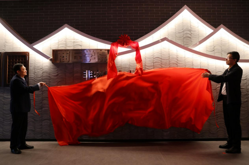 裴磊、程印學(xué)共同為商丘學(xué)院非物質(zhì)文化遺產(chǎn)展示館揭牌。