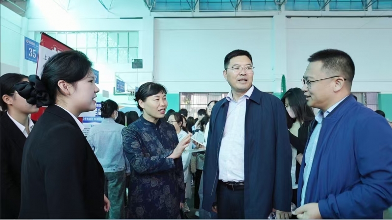 在雙選會現(xiàn)場,時斌與用人單位、畢業(yè)生進(jìn)行深入交流,詳細(xì)詢問用人單位招聘需求、薪資待遇等,傾聽畢業(yè)生求職訴求,鼓勵他們合理定位、主動溝通,把握就業(yè)機(jī)會。同時希望企業(yè)與學(xué)校深化合作,圍繞人才培養(yǎng)、實習(xí)實訓(xùn)等領(lǐng)域搭建發(fā)展平臺,促進(jìn)供需雙方更加精準(zhǔn)有效對接。