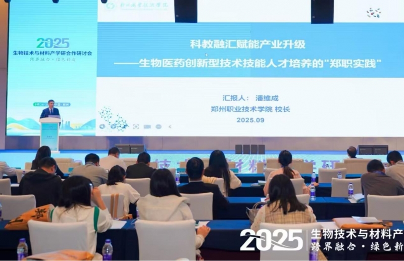 9月27日,鄭州職業(yè)技術(shù)學(xué)院黨委副書記、校長(zhǎng)潘維成教授出席“2025全國(guó)生物技術(shù)與材料產(chǎn)學(xué)研合作研討會(huì)”并作主旨報(bào)告。