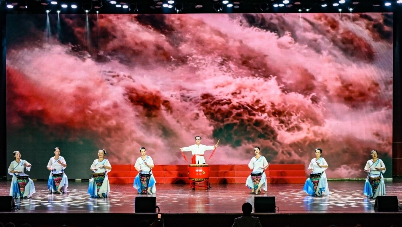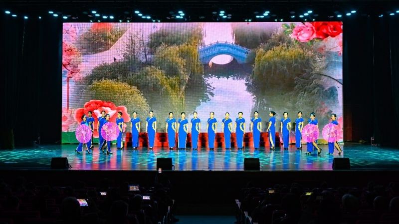 文藝匯演在精彩的舞蹈《燃燒的歲月》中拉開序幕。鼓樂表演《黃河水從我家門前過》讓全場觀眾身臨其境,感受黃河磅礴的氣勢。朗誦《銘記歷史,砥礪前行》、舞蹈《親吻祖國》《我的祖國》、歌伴舞《祖國萬歲》、男聲小合唱《祖國不會忘記》、紅歌串燒情景劇等節(jié)目以飽含深情的朗誦、婀娜多姿的舞蹈、慷慨激昂的歌聲表達了廣大離退休職工對祖國的無限熱愛和愛黨愛國的情懷。組合太極扇《扇舞乾坤》兼具瀟灑飄逸的美感與陽剛威儀的力感,以剛?cè)岵恼惺秸宫F(xiàn)了中國功夫的博大精深。葫蘆絲《最美瀏陽河》、模特秀《家鄉(xiāng)美》、豫劇《讓神州大地國泰民安》、京劇獨唱《不老的愛》等節(jié)目婉轉(zhuǎn)悠揚的演奏、時尚優(yōu)雅的姿態(tài)、獨具韻味的唱腔生動詮釋了中華傳統(tǒng)文化所蘊含的深厚文化底蘊。大合唱《太行山上》《愛永在》贏得了現(xiàn)場觀眾的熱烈掌聲,把整場節(jié)目推向了高潮。
