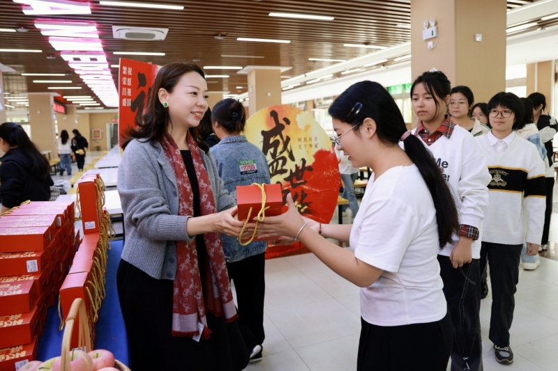 在新鄉(xiāng)校區(qū),黨委書記李庚專程來到日新書院的學(xué)生宿舍,與大家進行了親切而溫暖的交談。“假期生活安排得怎么樣?”“想家的時候可以多和同學(xué)、老師交流。”他細致地詢問同學(xué)們假期的生活與學(xué)習(xí)狀況,耐心傾聽大家的心聲,并代表學(xué)校向他們致以節(jié)日的誠摯問候。交談結(jié)束后,李庚又前往學(xué)生食堂,親自為同學(xué)們送上了學(xué)校精心準(zhǔn)備的月餅和蘋果。這些滿載心意的禮物,不僅寄托著“平安圓滿”的美好祝福,更讓遠離家鄉(xiāng)的學(xué)子們感受到了濃濃的師恩與學(xué)校的溫暖。