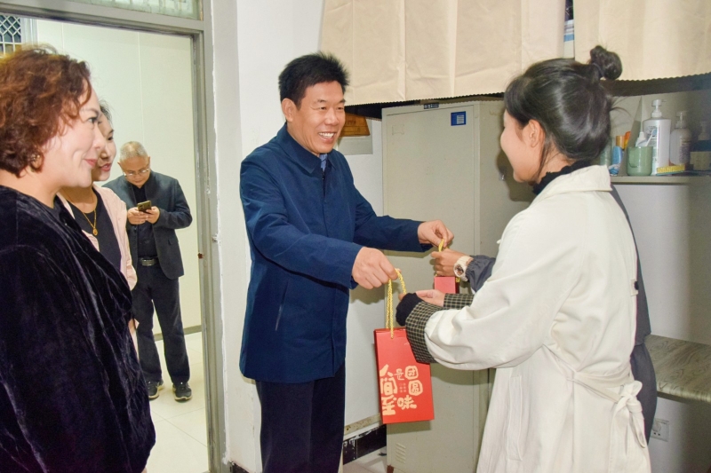 中秋佳節(jié),情滿校園。10月6日,在這個象征團圓與思念的傳統(tǒng)節(jié)日里,為使國慶假期留校的學(xué)生感受到家的溫暖與學(xué)校的深切關(guān)懷,豫北醫(yī)學(xué)院黨委書記李庚、校長李瓊、副校長馬波及相關(guān)職能部門負責(zé)同志分別前往兩校區(qū),親切看望假期留校的同學(xué)和一線值班的老師。