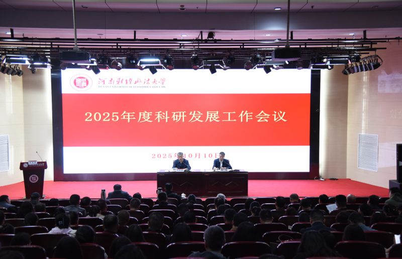為推進(jìn)學(xué)科治理體系綜合改革,構(gòu)建高效科研發(fā)展治理體系,有力支撐學(xué)校高質(zhì)量發(fā)展,10月10日,河南財(cái)經(jīng)政法大學(xué)召開2025年度科研發(fā)展工作會(huì)議。校黨委書記、校長(zhǎng)司林勝,副校長(zhǎng)張揚(yáng)、王利軍、葉光出席會(huì)議,各學(xué)部(學(xué)院)相關(guān)負(fù)責(zé)人,學(xué)科建設(shè)“攀峰”計(jì)劃學(xué)科團(tuán)隊(duì)、學(xué)術(shù)團(tuán)隊(duì)、實(shí)體研究機(jī)構(gòu)負(fù)責(zé)人及成員,近五年新入職博士,輔導(dǎo)員代表以及科研發(fā)展部全體人員參加會(huì)議。會(huì)議由張揚(yáng)主持。