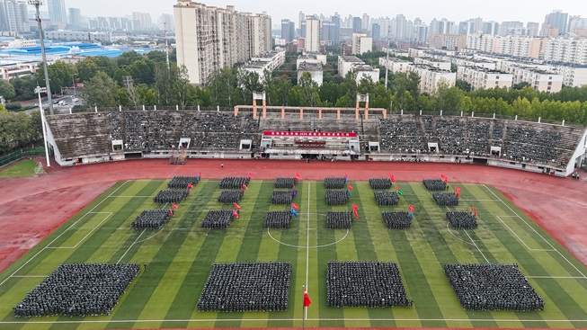 10月11日上午,安陽(yáng)師范學(xué)院2025級(jí)新生軍訓(xùn)成果匯報(bào)暨總結(jié)表彰大會(huì)在弦歌大道校區(qū)北體育場(chǎng)和文明大道校區(qū)同時(shí)舉行。校黨委副書(shū)記王宏偉,副校長(zhǎng)時(shí)斌,校軍訓(xùn)工作領(lǐng)導(dǎo)小組成員單位負(fù)責(zé)人,各學(xué)院黨委副書(shū)記、輔導(dǎo)員,全體教官和參訓(xùn)新生觀看軍訓(xùn)成果匯報(bào)。