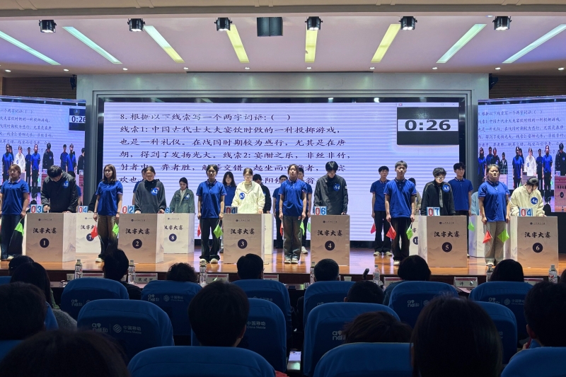 經(jīng)過前期報名、培訓(xùn)、初賽與復(fù)賽的層層選拔,來自全校各學(xué)院的24名選手脫穎而出,成功晉級決賽。本次大賽參照省級賽事標準,采用“積分+淘汰”機制,分三輪展開競技。試題內(nèi)容涵蓋文學(xué)、藝術(shù)、建筑、歷史等多個領(lǐng)域,題型靈活多樣,在傳統(tǒng)音形義考查基礎(chǔ)上,創(chuàng)新融入古文字形識別、表演猜字、線索溯源、字詞飛花等趣味環(huán)節(jié),全面檢驗選手的語言文字運用能力與綜合文化素養(yǎng)。比賽過程中還設(shè)置了觀眾互動答題環(huán)節(jié),現(xiàn)場同學(xué)踴躍參與,氣氛熱烈,充分展現(xiàn)了學(xué)校學(xué)子積極求知的精神風(fēng)貌與良好的綜合素養(yǎng)。