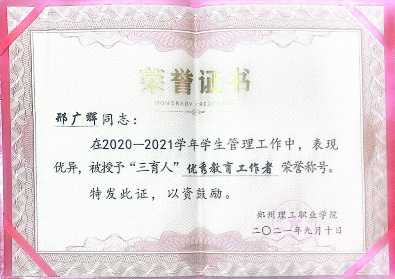 十年耕耘,十年堅(jiān)守。從輔導(dǎo)員到學(xué)校中層黨務(wù)干部,崗位在變,但邢廣輝“一顆紅心永向黨”的忠誠(chéng)不變,“服務(wù)師生、奉獻(xiàn)杏壇”的初心不變,先后榮獲新鄭市統(tǒng)戰(zhàn)工作先進(jìn)個(gè)人,學(xué)校優(yōu)秀共產(chǎn)黨員、優(yōu)秀教育工作者、先進(jìn)教育工作者稱號(hào)。他用十年時(shí)光,在鄭州理工職業(yè)學(xué)院的沃土上書(shū)寫(xiě)了一篇黨務(wù)工作者的奮斗華章。