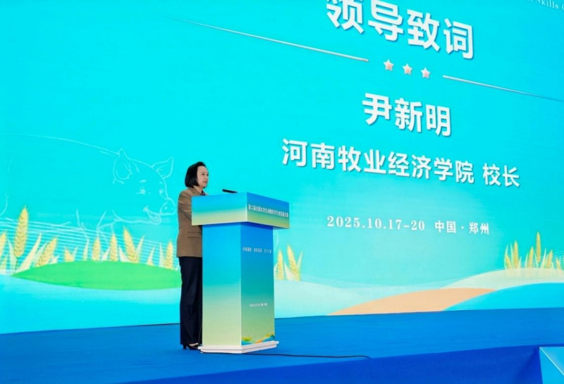 尹新明在致辭中對(duì)蒞臨本次大賽的各位領(lǐng)導(dǎo)、嘉賓、企業(yè)代表以及全體參賽師生表示熱烈歡迎。她指出,河南牧業(yè)經(jīng)濟(jì)學(xué)院始終堅(jiān)持以立德樹(shù)人為根本,以強(qiáng)農(nóng)興農(nóng)為己任,堅(jiān)持農(nóng)科攀峰、工科強(qiáng)鏈、商科惟用,走牧工商一體化多學(xué)科交叉融合創(chuàng)新發(fā)展之路。動(dòng)物科學(xué)專(zhuān)業(yè)是學(xué)校首批本科專(zhuān)業(yè),培養(yǎng)了一大批奮戰(zhàn)在教學(xué)、科研、生產(chǎn)第一線上的優(yōu)秀人才,為河南省乃至中國(guó)畜牧業(yè)的蓬勃發(fā)展作出了卓越貢獻(xiàn)。長(zhǎng)期以來(lái),學(xué)校高度重視實(shí)踐育人工作,希望以本次大賽為平臺(tái),進(jìn)一步加強(qiáng)參賽各方的交流與合作,營(yíng)造全社會(huì)關(guān)心支持動(dòng)物科學(xué)專(zhuān)業(yè)人才培養(yǎng)的良好氛圍;希望以本次大賽為契機(jī),加強(qiáng)產(chǎn)教融合,推動(dòng)高校與社會(huì)力量的協(xié)同,把農(nóng)業(yè)科技進(jìn)步的前沿要求和產(chǎn)業(yè)發(fā)展的實(shí)際需求,始終貫穿在人才培養(yǎng)全過(guò)程;希望以本次大賽為引領(lǐng),服務(wù)國(guó)家重大戰(zhàn)略需求,共同推動(dòng)畜牧學(xué)科高質(zhì)量發(fā)展,為農(nóng)業(yè)強(qiáng)省和教育強(qiáng)國(guó)貢獻(xiàn)力量。