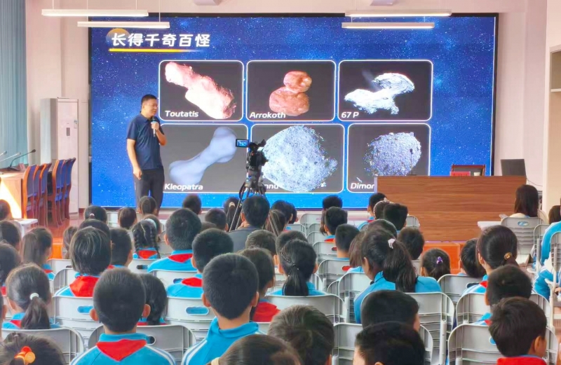 報(bào)告會(huì)上,專(zhuān)家們將高深的知識(shí)化為生動(dòng)的語(yǔ)言與可視化的展示,深深吸引了在場(chǎng)的每一位學(xué)生。中國(guó)科學(xué)院古脊椎動(dòng)物與古人類(lèi)研究所研究員蓋志琨以“從魚(yú)到人”的演化歷程,引導(dǎo)孩子們思考生命的奧秘。中國(guó)科學(xué)院國(guó)家空間科學(xué)中心研究員李明濤將小行星運(yùn)行軌跡可視化,深入淺出地講解天體防御知識(shí),在無(wú)數(shù)少年心中種下了航天夢(mèng)的種子。與此同時(shí),北京石墨烯研究院副院長(zhǎng)張保國(guó)展示了石墨烯的神奇特性,中國(guó)科學(xué)院自動(dòng)化所研究員楊鑫揭秘了人臉識(shí)別背后的技術(shù)原理,國(guó)家天文臺(tái)研究員姜曉軍帶領(lǐng)學(xué)生徜徉于《宇宙之美》,中國(guó)計(jì)量科學(xué)研究院副研究員粟多武則結(jié)合親身南極科考經(jīng)歷,闡釋了計(jì)量科學(xué)的關(guān)鍵作用。每一場(chǎng)報(bào)告都座無(wú)虛席,學(xué)生踴躍提問(wèn),與專(zhuān)家積極互動(dòng),科學(xué)的魅力在熱烈的交流中充分彰顯。