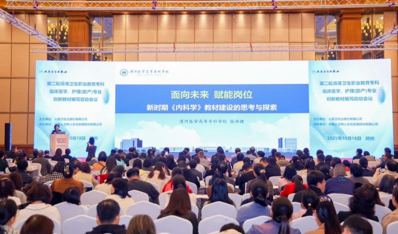 2025年10月18日,由人民衛(wèi)生出版社主辦的第二輪高等衛(wèi)生職業(yè)教育臨床醫(yī)學(xué)、護(hù)理(助產(chǎn))專(zhuān)業(yè)創(chuàng)新教材編寫(xiě)啟動(dòng)會(huì)在鄭州召開(kāi)。本次會(huì)議匯聚全國(guó)120余所院校的650余名專(zhuān)家學(xué)者,漯河醫(yī)學(xué)高等專(zhuān)科學(xué)校校長(zhǎng)張祎捷教授作為教材評(píng)審委員會(huì)副主任委員應(yīng)邀出席,并作大會(huì)主題報(bào)告。