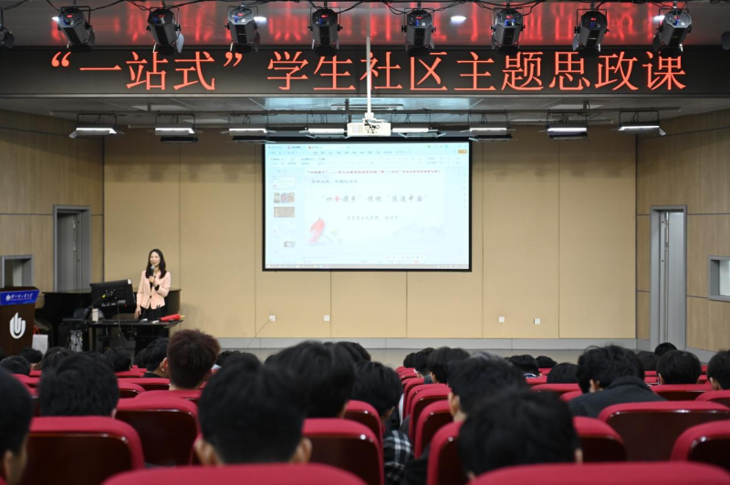 近日,“問古頌今”鄭州輕工業(yè)大學(xué)主題思政課“中國(guó)式浪漫”主題第一期暨“一站式”學(xué)生社區(qū)思政課第七期于科學(xué)校區(qū)音樂廳開講。該校黨委宣傳部、黨委學(xué)工部、馬克思主義學(xué)院、新時(shí)代思想政治教育研究中心等部門的相關(guān)領(lǐng)導(dǎo)和老師,以及“一站式”學(xué)生社區(qū)200名學(xué)生及輔導(dǎo)員參與。馬克思主義學(xué)院劉興華老師擔(dān)任主講,題目為《“四傘攜手”傳頌“浪漫中國(guó)”》。