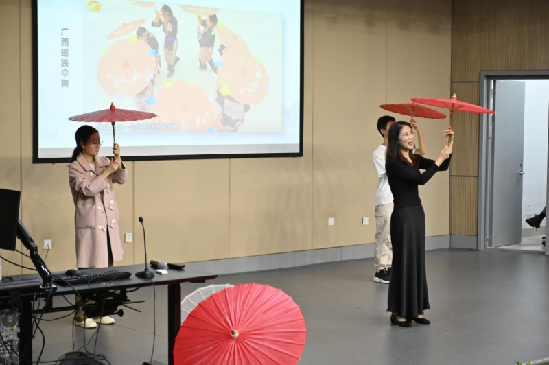 課上,同學(xué)們一起學(xué)習(xí)了歷史悠久的“傘文化”,了解了“傘”的古老“身世”及其中蘊(yùn)含的濃濃詩意、英雄氣概和深深情意,并與“四傘”攜手,將“舞”與“武”融合,通過進(jìn)行中華優(yōu)秀傳統(tǒng)文化“兩創(chuàng)”實(shí)踐展現(xiàn)“中國(guó)式浪漫”的獨(dú)有意蘊(yùn)。同學(xué)們跟隨著劉老師一起了解油紙傘的歷史及構(gòu)造,練習(xí)太極傘的部分招式,體驗(yàn)傣族傘舞的獨(dú)特步法,學(xué)習(xí)瑤族傘舞的由來和轉(zhuǎn)傘之技,并將學(xué)習(xí)和體驗(yàn)的招式、動(dòng)作和技巧融合創(chuàng)造,展現(xiàn)“傘”的詩意、美感和義氣,感悟“傘”的美好精神品質(zhì),領(lǐng)悟如何做一個(gè)溫暖而有力量的人。