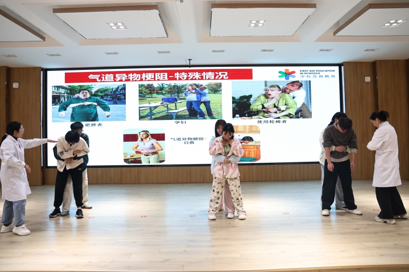 樂(lè)春燕結(jié)合多年公共衛(wèi)生服務(wù)與工作經(jīng)驗(yàn),圍繞“心肺復(fù)蘇”“海姆立克急救法”兩塊核心內(nèi)容,通過(guò)理論講解與實(shí)操演示相結(jié)合的方式,為現(xiàn)場(chǎng)師生帶來(lái)了一堂生動(dòng)而實(shí)用的急救知識(shí)課。