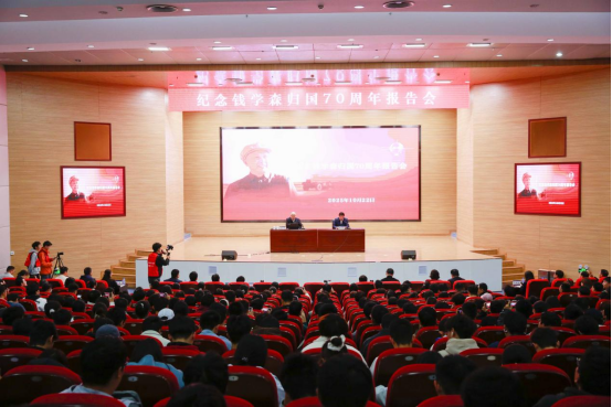 隨后,錢永剛以《精神鑄就人生》為題為全校師生代表作報告。他以“勤奮、嚴(yán)謹(jǐn)、誠信、創(chuàng)新、擔(dān)當(dāng)”等關(guān)鍵詞為脈絡(luò),通過生動故事和詳實資料全面展示了錢學(xué)森義無反顧的家國情懷和在科學(xué)領(lǐng)域的卓越成就,帶領(lǐng)師生在錢學(xué)森壯闊的人生航跡中真切地體會錢學(xué)森“把國家利益放在首位”的赤子情懷,深刻理解科學(xué)家精神。
