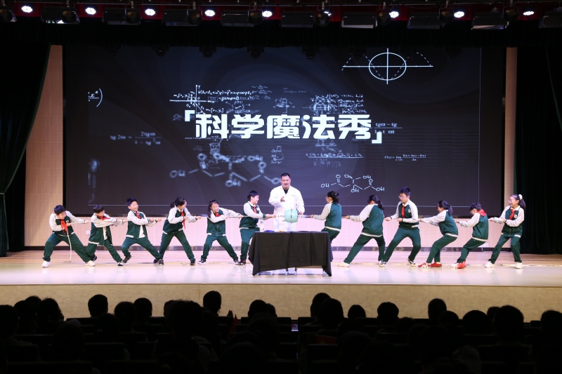 科技節(jié)的帷幕在熱烈的氣氛中正式拉開。開幕式上,學校小水滴合唱團的孩子們在《玉盤》的演唱中將國之重器里的東方智慧與科技溫度唱給大家聽。六年級學生用創(chuàng)意與表演編織了一場科學追夢,一幕幕的戲劇再現(xiàn)了宋應星、袁隆平的科學人生。學校特色樂器小鐘琴表演的《國家》更是詮釋了家國相連的溫度。當教師代表和學生代表共同為本次科技節(jié)按下啟動鍵時,更是將本次開幕式推向了高潮。隨后的“科學魔法秀”表演,將深奧的科學原理以奇幻有趣的實驗形式呈現(xiàn),引得現(xiàn)場驚嘆連連,瞬間點燃了孩子們對科學的好奇與向往。