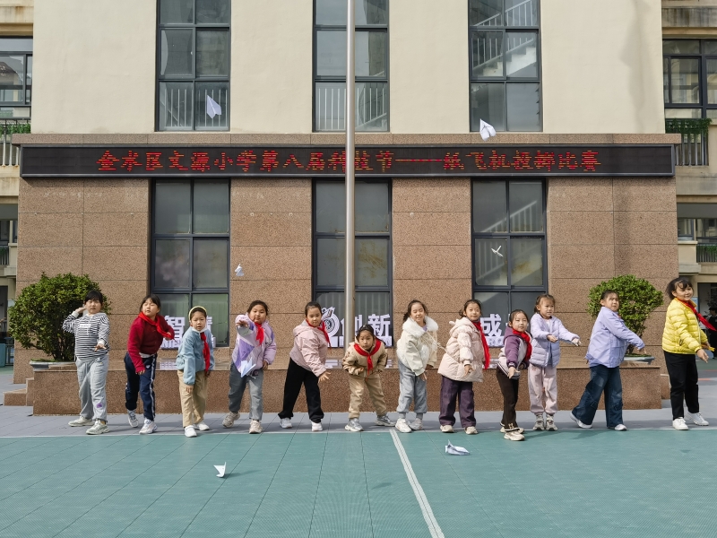 本屆科技節(jié)精心策劃了涵蓋體驗、競技、閱讀、創(chuàng)作等多個維度的系列活動,確保每位學生都能找到自己的興趣點。科技成果展上,各年級學生根據(jù)科學課上所學的天氣、生物、航空航天等知識為靈感進行創(chuàng)作,既實現(xiàn)了知識的活學活用,更加深了對科學課核心知識點的理解與掌握。“科技+”學科融合成果展示區(qū)域,匯集了學生將科學與語文、美術、數(shù)學等學科知識相融合,同時結合九三閱兵式上機甲戰(zhàn)機等創(chuàng)新的作品,充分體現(xiàn)了跨學科學習的成果與魅力。科普閱讀分享會上,同學們暢游書海,紛紛分享閱讀10月份黃校長推薦科普讀物的收獲,在交流與感悟中,愛探索、敢提問的科學種子也悄然在同學們的心中埋下。科普觀影活動與“感觸科學之謎”云端科學課,則利用現(xiàn)代視聽技術,帶領學生們穿越時空,感受科學的神秘與壯麗。紙飛機投擲比賽現(xiàn)場,同學們化身”小小設計師“,將精心折制的紙飛機用力擲出。一架架小小的紙飛機既承載著同學們的創(chuàng)意與夢想,也讓同學們在動手實踐中直觀感受到了空氣動力學原理的魅力。“源夢劇場-未來律動”街舞專場別出心裁地將科技感與藝術表演融合,讓街舞的節(jié)奏不僅能被聽見、看見,更能通過科技化的形式被真切感知,潛移默化地培養(yǎng)學生對藝術與科技的雙重興趣。科學素養(yǎng)評價活動,不僅有效檢驗了同學們的科學知識積累與探究能力,更以評價為紐帶,助力學生培養(yǎng)科學思維習慣,逐步養(yǎng)成以科學視角發(fā)現(xiàn)問題、解決問題的能力。