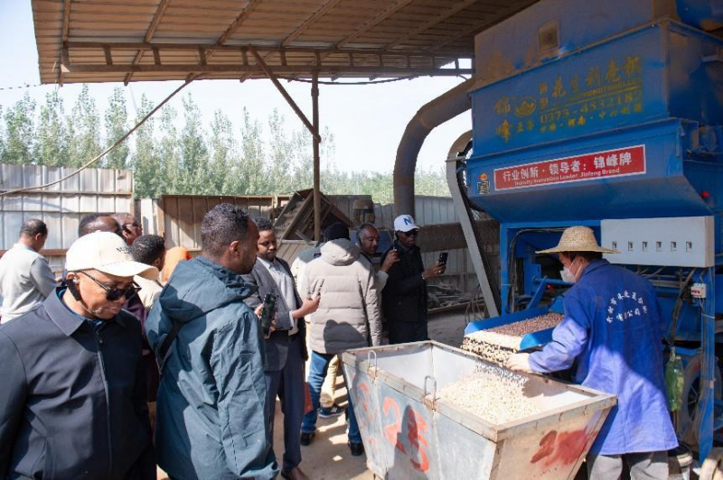 10月21日,由國家商務(wù)部主辦,河南工業(yè)大學(xué)對外援助培訓(xùn)中心承辦的“非盟國家糧食產(chǎn)后安全研修班”和“‘非洲之角’糧食安全研修班”的56名糧農(nóng)官員,赴河南工業(yè)大學(xué)定點幫扶的鄭州航空港區(qū)馬古崗村,考察交流中國基層農(nóng)村鄉(xiāng)村振興的實踐經(jīng)驗。