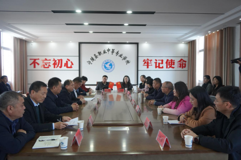 寧陵縣職業(yè)中等專業(yè)學(xué)校校長黃乾對李國鋒一行到來表示熱烈歡迎,對近年來學(xué)校就思政建設(shè)、黨員幫扶、圖書捐贈等方面開展的精準(zhǔn)幫扶工作表示感謝。李國鋒表示,職業(yè)教育前景廣闊,中高職教育呈一體化發(fā)展態(tài)勢,希望雙方發(fā)揮特長優(yōu)勢,深化幫扶合作,在職業(yè)教育領(lǐng)域不斷探索創(chuàng)新模式,實現(xiàn)校地雙方的互利共贏。會上,學(xué)校與寧陵縣職業(yè)中專就師資培訓(xùn)、實訓(xùn)基地建設(shè)、教科研項目合作等方面進(jìn)行了深入交流,并初步探討了中高職“3+2”分段培養(yǎng)、共建新能源汽車技術(shù)、無人機等新專業(yè)的合作路徑,為后續(xù)深度合作奠定了堅實基礎(chǔ)。