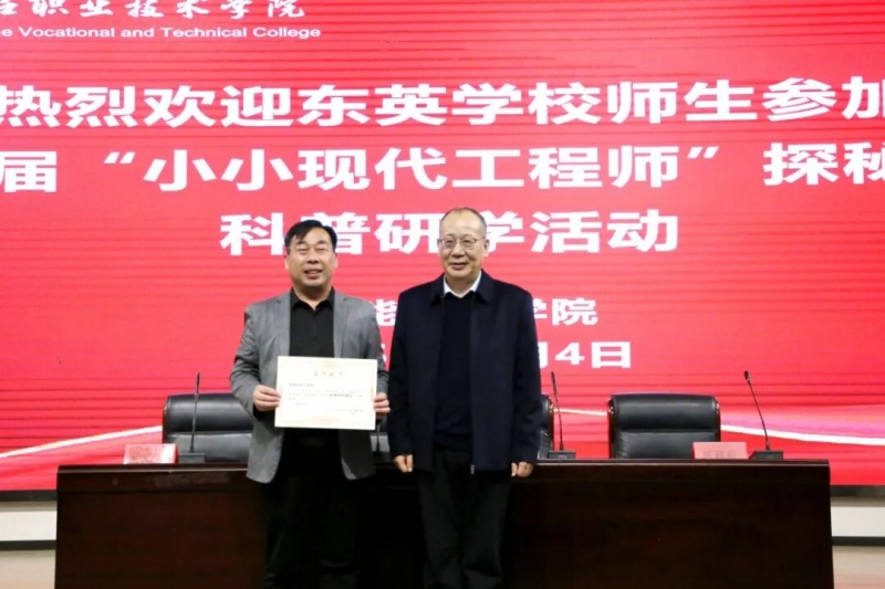 頒獎(jiǎng)典禮上,東英學(xué)校小學(xué)部獲頒 “優(yōu)秀組織單位”,各班級(jí)分別榮獲“特色團(tuán)隊(duì)”榮譽(yù)稱號(hào),全體參與學(xué)生均獲得 “小小現(xiàn)代工程師” 證書。這些榮譽(yù)不僅是對(duì)參與師生的肯定,更成為校地合作育人成果的具體體現(xiàn)。