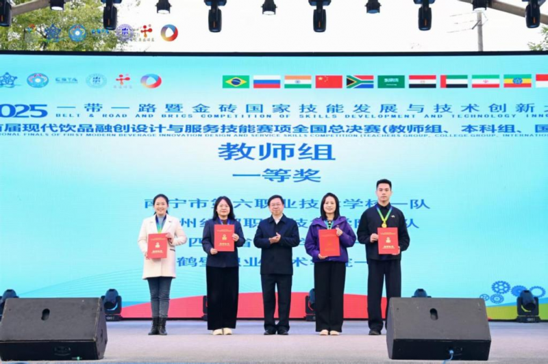 11月1日至8日,2025“一帶一路”暨金磚國家技能發(fā)展與技術(shù)創(chuàng)新大賽首屆現(xiàn)代飲品融創(chuàng)設(shè)計與服務(wù)技能賽項進行了全國總決賽,學(xué)生組和教師組的比賽先后在內(nèi)蒙古包頭和成都成功舉辦。在激烈角逐中,鶴壁職業(yè)技術(shù)學(xué)院交通服務(wù)與管理學(xué)院代表隊?wèi){借優(yōu)秀的專業(yè)素養(yǎng)、獨到的創(chuàng)新能力和出色的團隊協(xié)作從眾多參賽隊伍中脫穎而出,教師組斬獲全國總決賽一等獎、學(xué)生組榮獲全國總決賽二等獎。同時,鶴壁職業(yè)技術(shù)學(xué)院在賽事組織、選手培養(yǎng)和協(xié)同備賽方面表現(xiàn)突出,榮獲“最佳組織獎”。