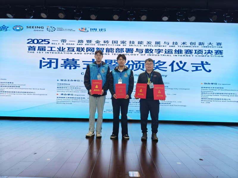 11月6日至10日,2025“一帶一路”暨金磚國(guó)家技能發(fā)展與技術(shù)創(chuàng)新大賽首屆工業(yè)互聯(lián)網(wǎng)智能部署與數(shù)字運(yùn)維賽項(xiàng)決賽在四川綿陽(yáng)西南財(cái)經(jīng)大學(xué)天府學(xué)院圓滿落幕。來(lái)自金磚11個(gè)成員國(guó)的200余名技能精英同臺(tái)競(jìng)技,鄭州理工職業(yè)學(xué)院智能交通學(xué)院師生憑借過(guò)硬的專業(yè)素養(yǎng)與出色的實(shí)戰(zhàn)能力斬獲多項(xiàng)榮譽(yù),充分展現(xiàn)了學(xué)校人才培養(yǎng)的豐碩成果與學(xué)子的青春風(fēng)采。