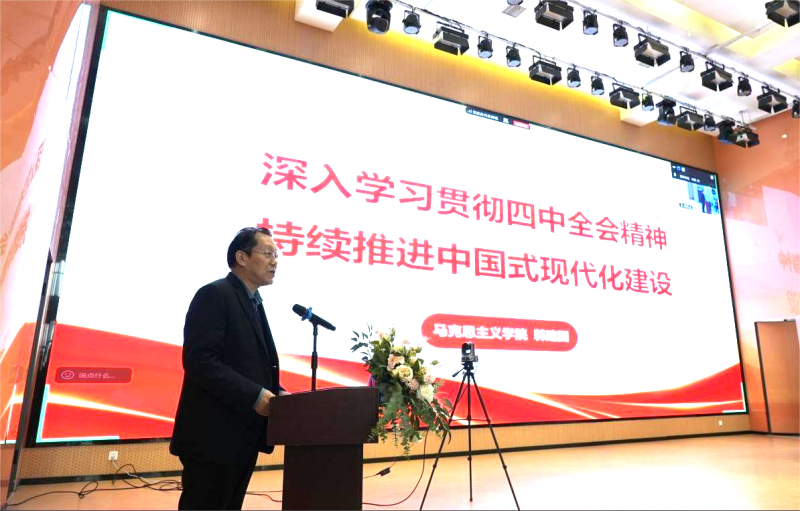 講座中,韓建國教授以“深入學習貫徹黨的二十屆四中全會精神,持續(xù)推進中國式現(xiàn)代化建設”為核心主題,圍繞全會審議通過的《中共中央關于制定國民經濟和社會發(fā)展第十五個五年規(guī)劃的建議》(以下簡稱《建議》)展開系統(tǒng)解讀。